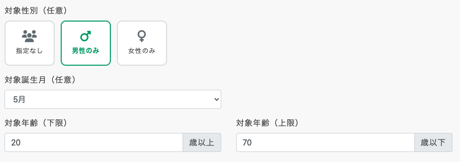 ・性別/誕生月/年齢などのフィルター条件を組み合わせたターゲティング配布も可能