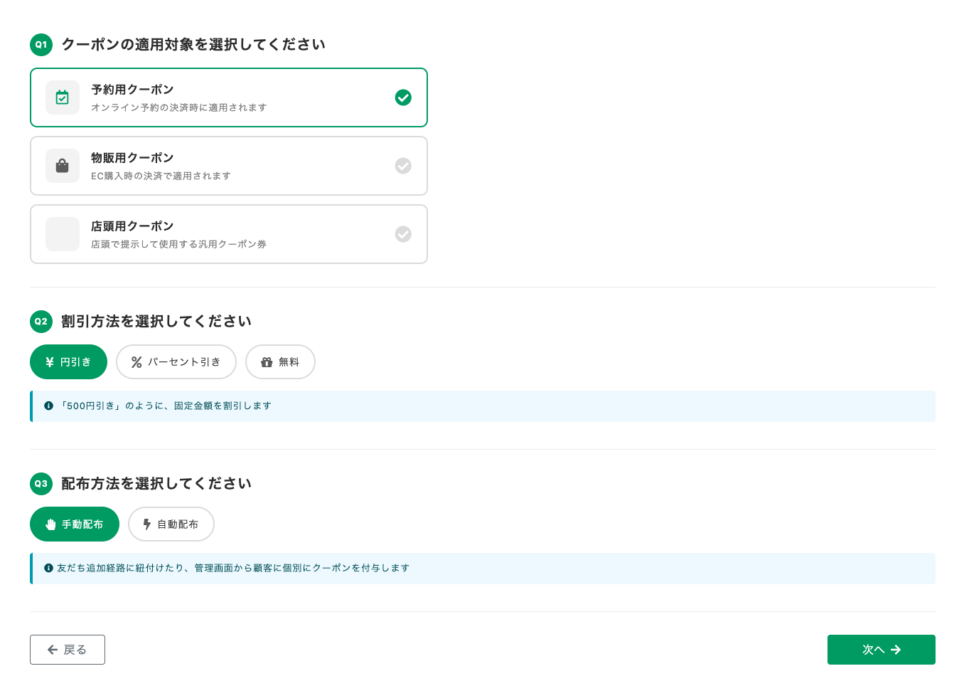 Step1:クーポンの適用場面とタイプを選択