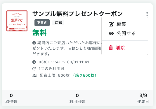 クーポンの作成方法