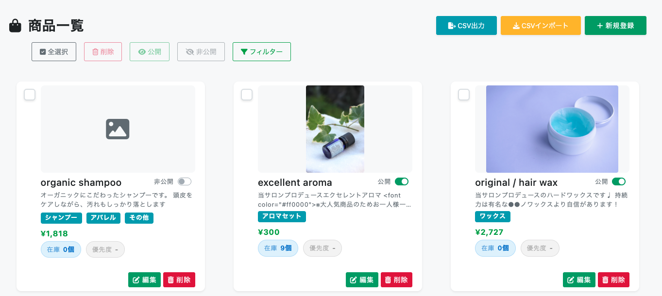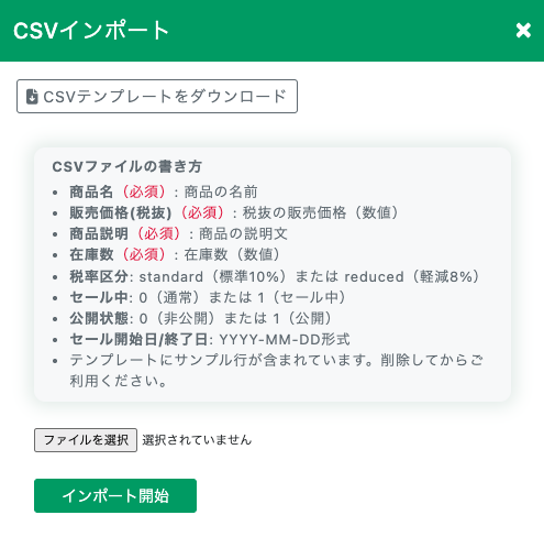・CSVファイルからの商品一括インポートにも対応